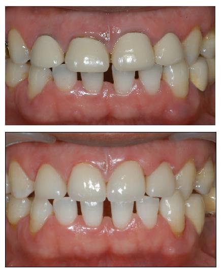 기존 보철물의 금속이 잇몸에 비치는 현상과 짧은 치아 길이로 인한 심미보철 사례